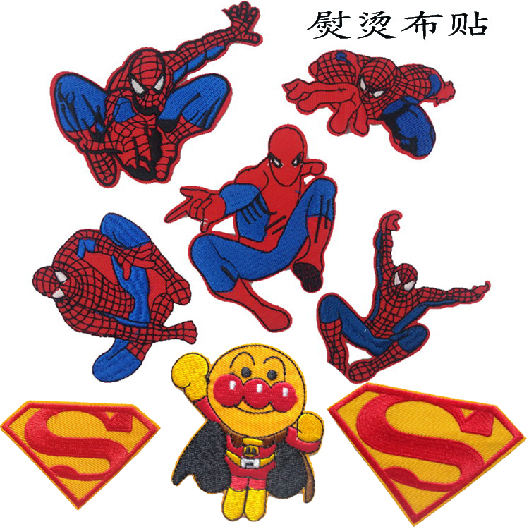 Embroidered ironing cloth sticker DIY fashion clothes accessories Spiderman Superman boy outsuit pants breaking holes to stick to cartoon