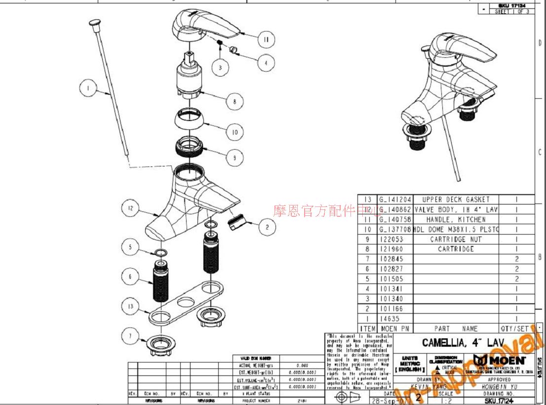 17124-12- water mixer 17124-4-o type ring 17124-2-gasket 17124-8-Core shaft nut 17124-6-handle 17127