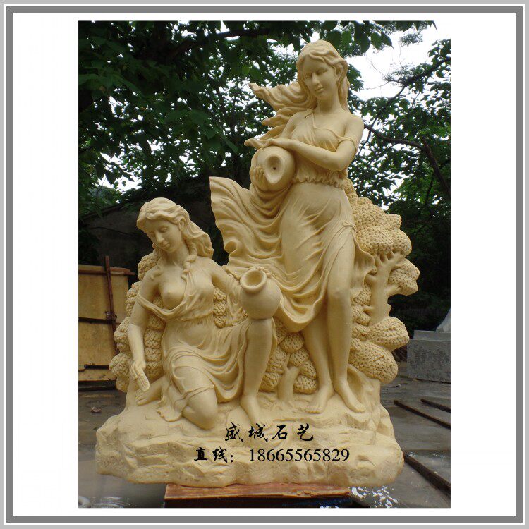 Sandstone double like Sculpture Eurostyle Figure Round Sculpture Sandstone Large Spray Pool Water Wall Sculpture Waterscape Decoration