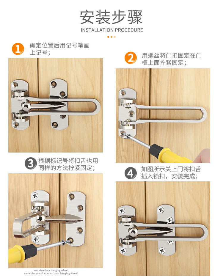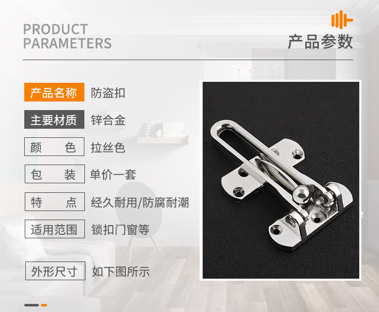 Thickened door chain Hotel hotel door bolt lock door latch Door chain buckle European Zinc alloy safety door chain