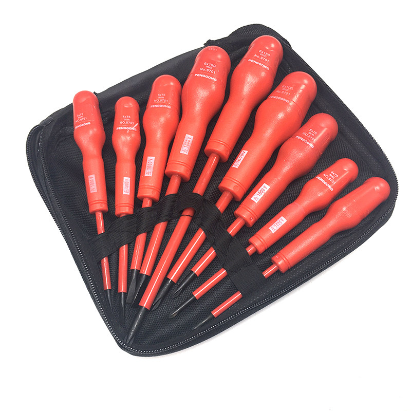 Peng work 9701 electrician insulation screwdriver 9 pieces suit screw screwdriver screwdriver cross I chrome vanadium