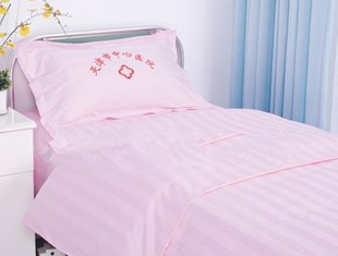 Hospital medical bedding three-piece sheet quilt cover pillowcase White blue striped bedding disease specials