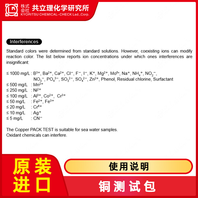 Japan co-standing copper WAK-Cu ion test kits for breeding electroplating sewage discharge water copper detection kit
