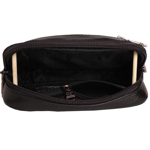 Laced dark bag with mobile phone bag documents in place