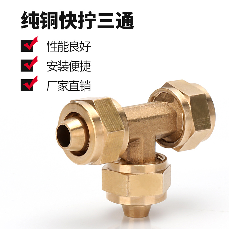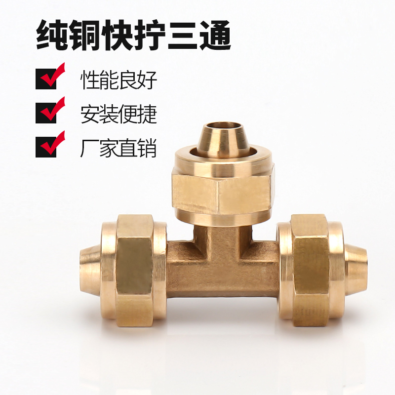 Brass quick screw tee 6MM brass quick screw tee 8MM brass quick screw tee 12MM