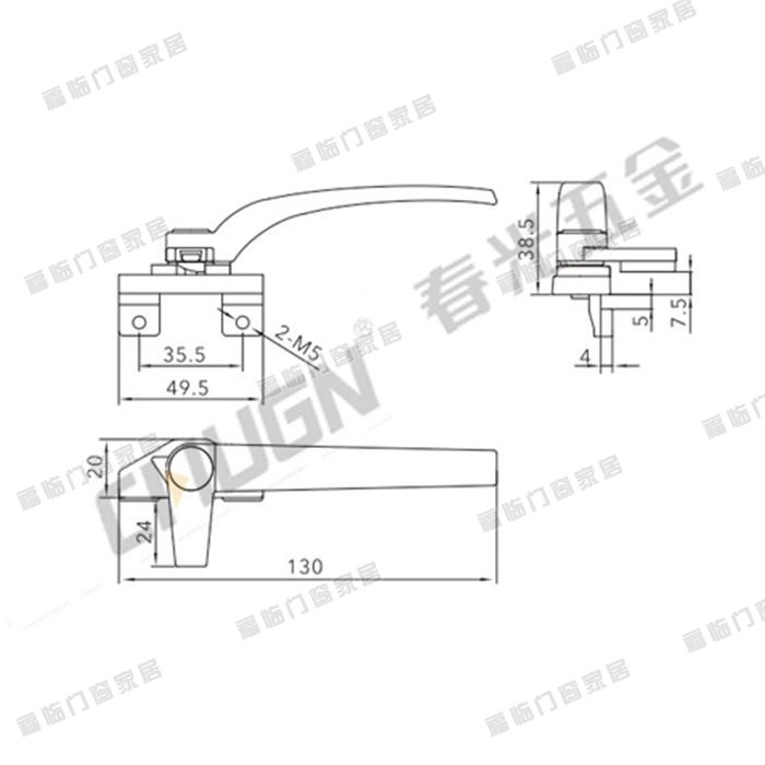 Chunguang brand aluminum alloy 38 flat open board hand lock door window handle handle door and window handle casement window handle lock buckle