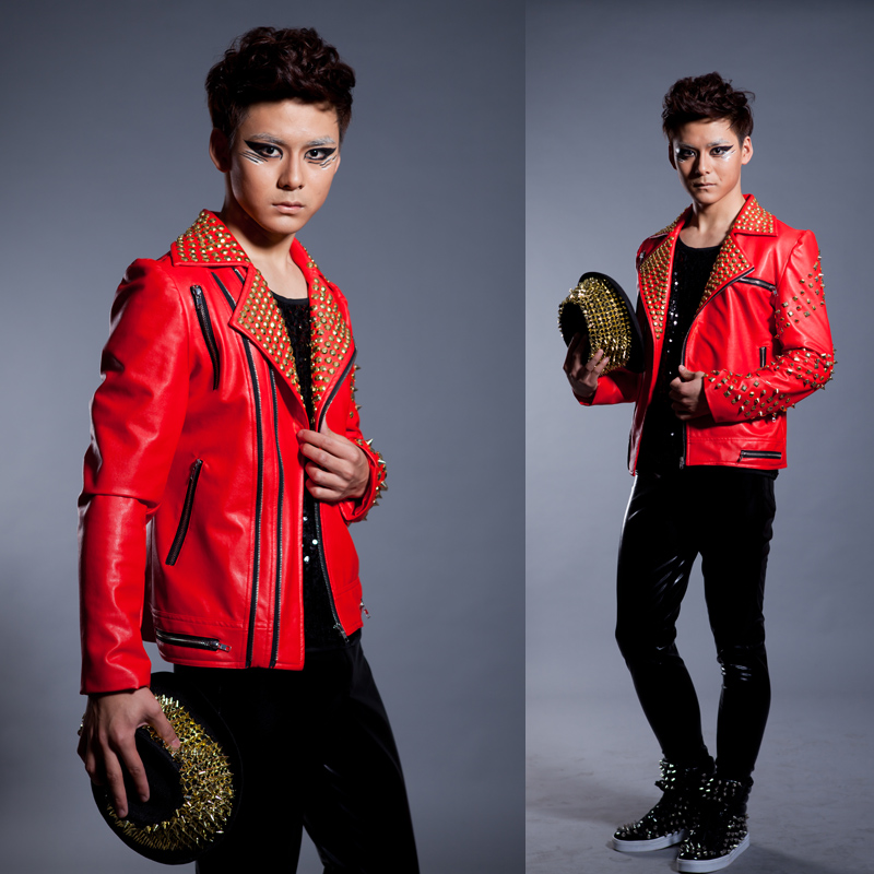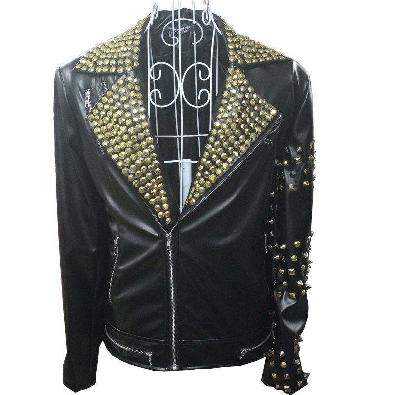 Special offer stage outfit nightclub bar costume singer DS male full hand rivet punk motorcycle leather jacket