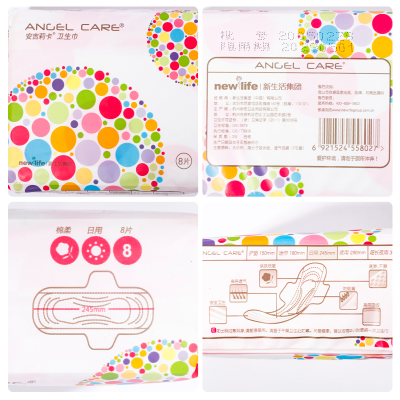 Special cabinet Korea new life Angelika pure cotton soft daily sanitary cotton 8 pieces Aunt Wipes With Protective Wings