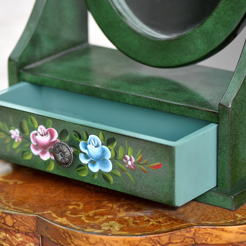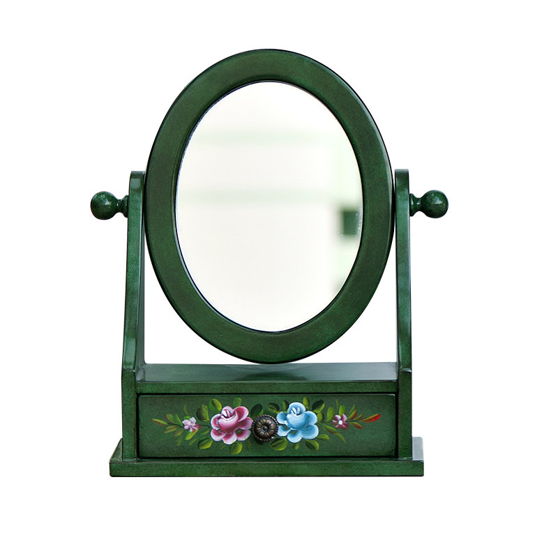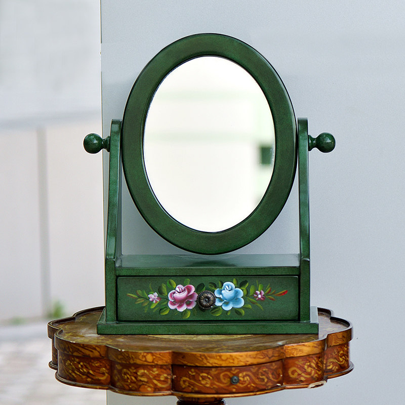 American country vintage painted vanity mirror Elliptical mirror Economy desk mirror with drawer mini storage storage box
