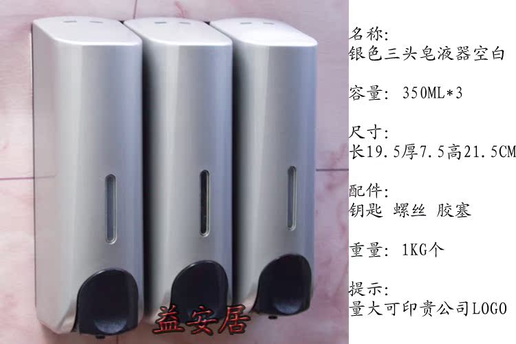 Hotel silver three-headed wordless soap dispenser wall-mounted hand sanitizer soap box bath soap box to soap box