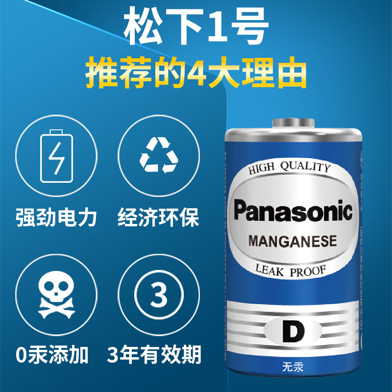 Panasonic 1 battery D type 1 large carbon R20 water heater gas cooktop battery 20 particles 1 5V dry battery 20 knots of dry battery