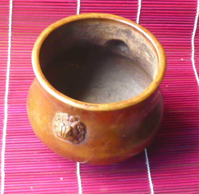 Pure copper incense stove 1 5 catty high imitation made of old lion head double ear Daming oven flat bottom