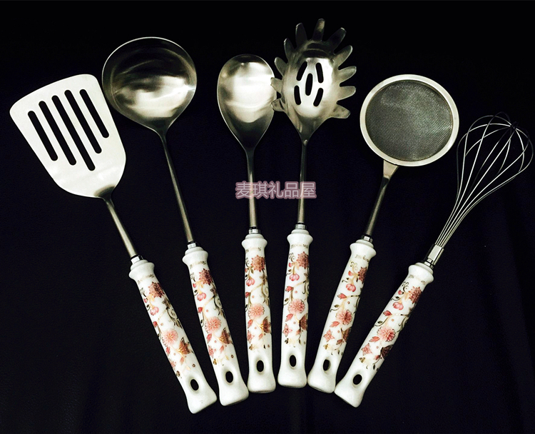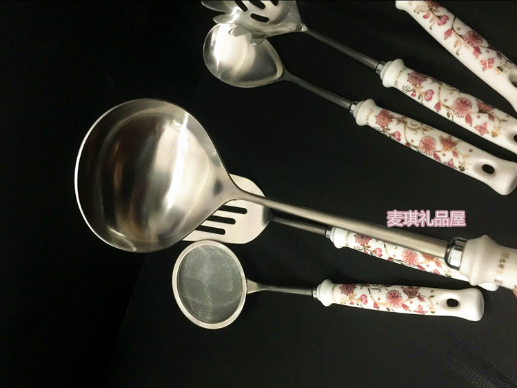 Imported kitchenware wedding gift 24K Phnom Penh ceramic 304 stainless steel thick pot spatula soup spoon colander filter set