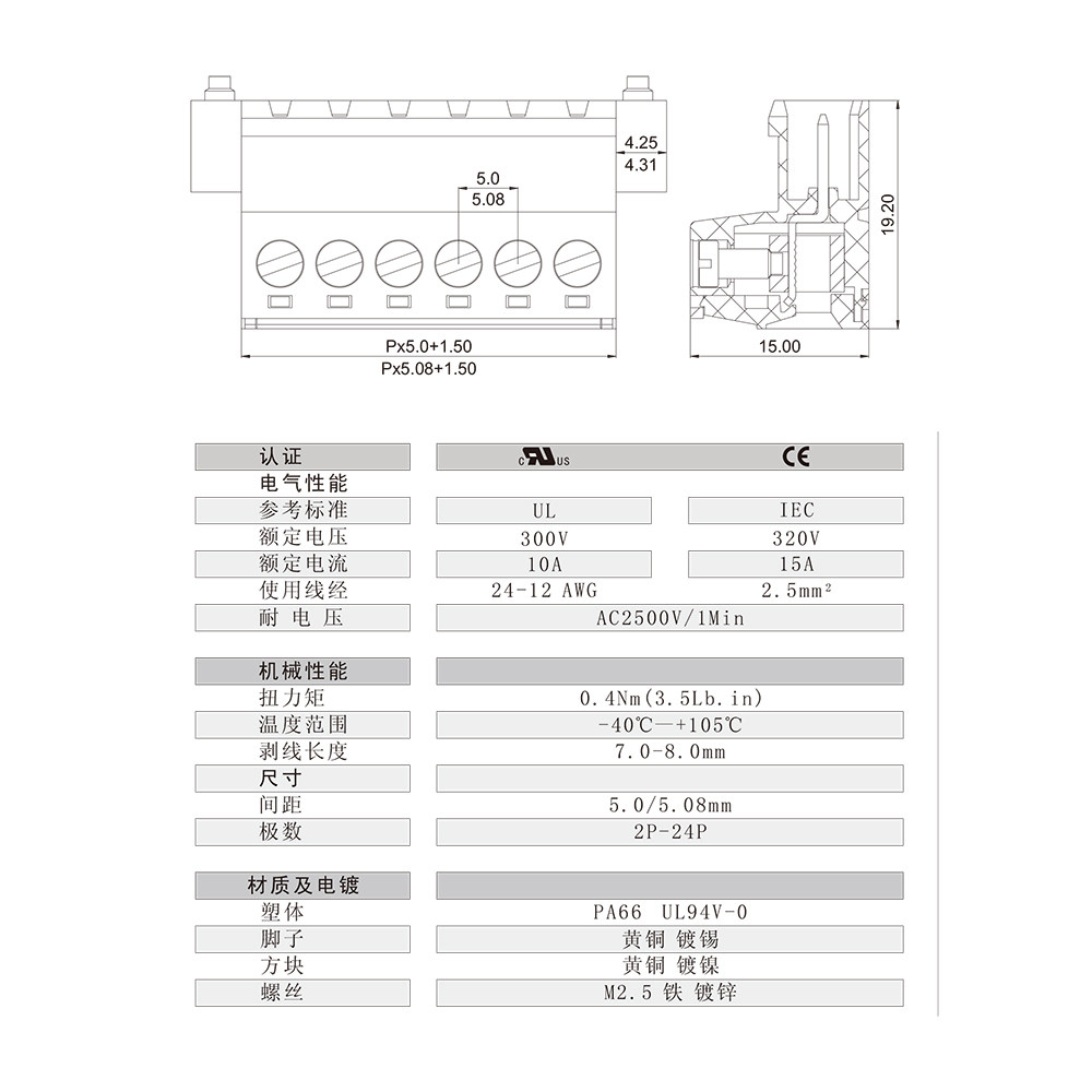 5 08mm plug-in-type PCB wiring end subbench 2EDGKRM 2ESHM KF2EDGRKM KF2EDGRKM 25 STF