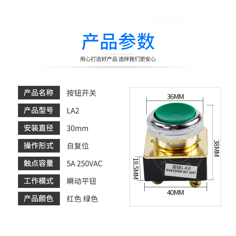LA2U PUSHBUTTON SWITCH SELF RESET CONTROL BUTTON FLAT HEAD FLAT NOB MUSHROOM HEAD INSTALLATION CALIBER 30MM RED GREEN