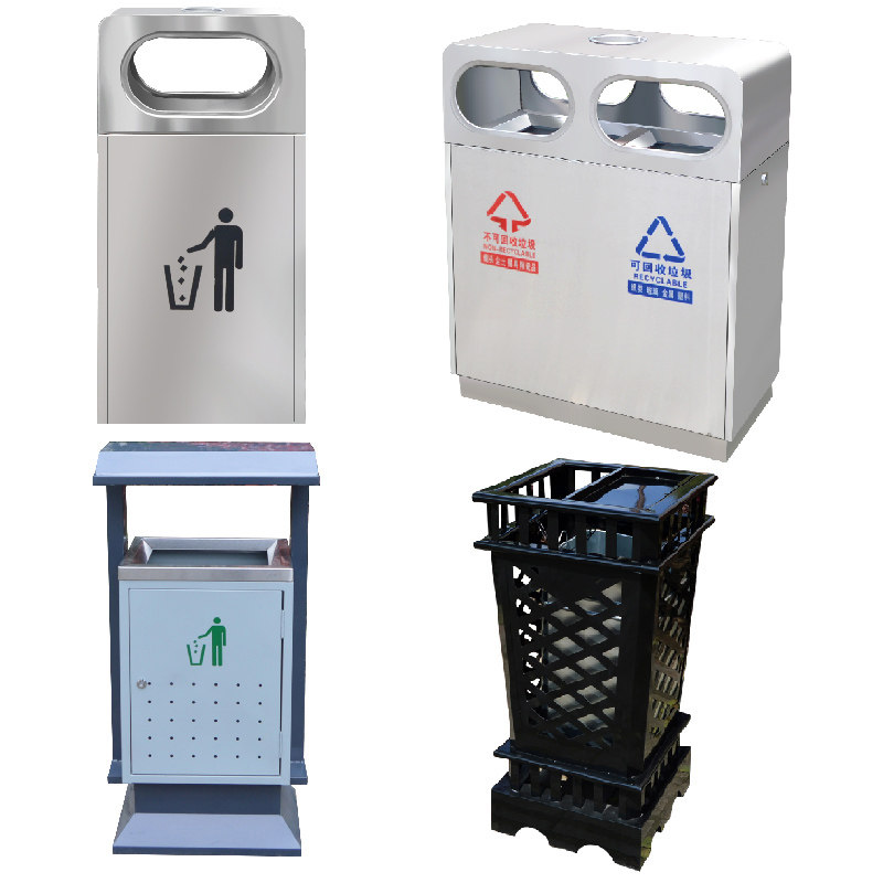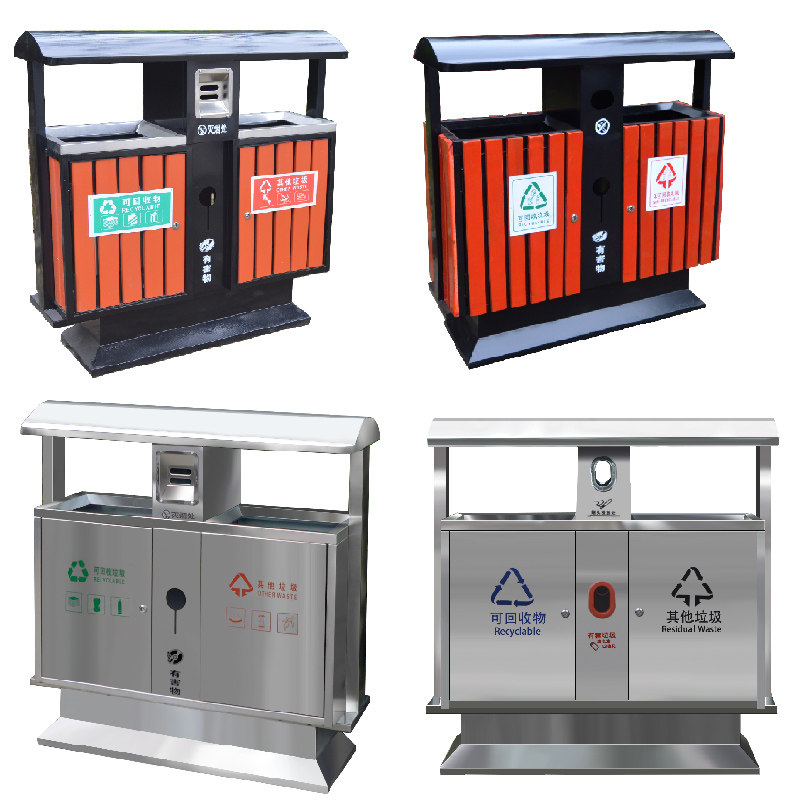 Outdoor Trash Can Large Street Classification Scenic Area Sanitation School Outdoor Steel Wood Park Community Fruit Leather Case
