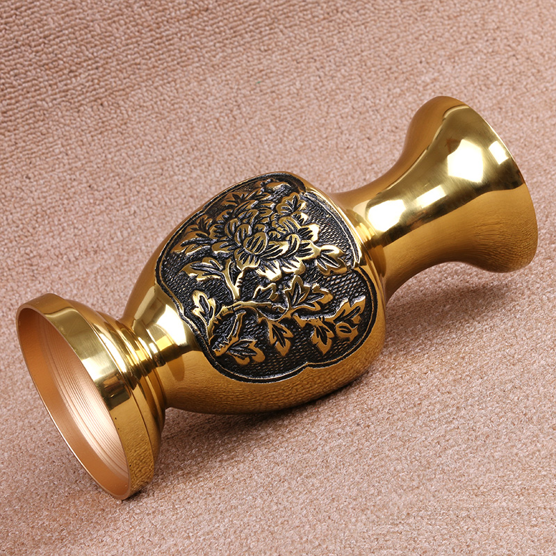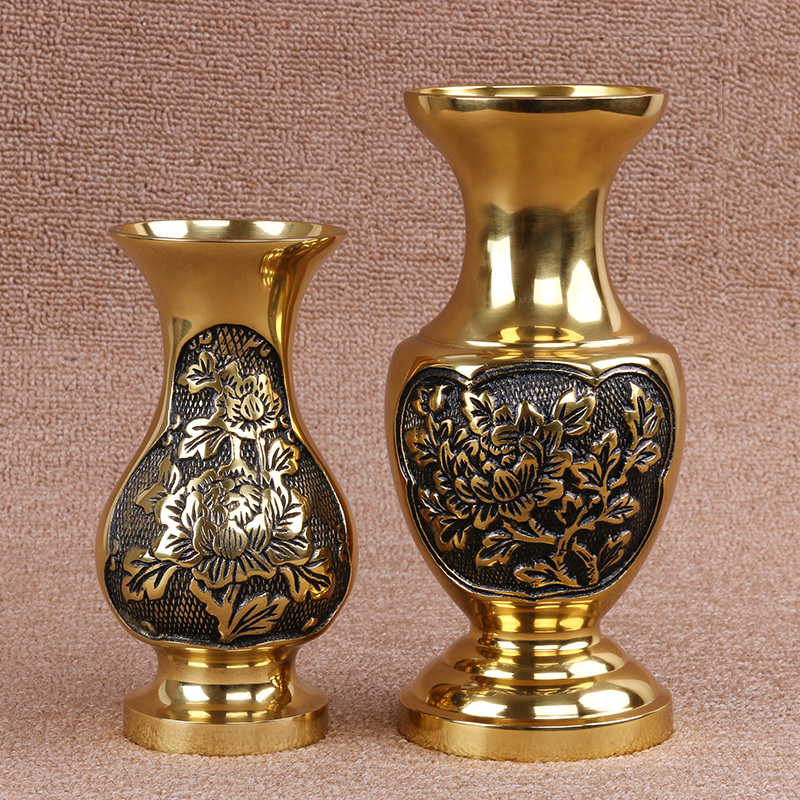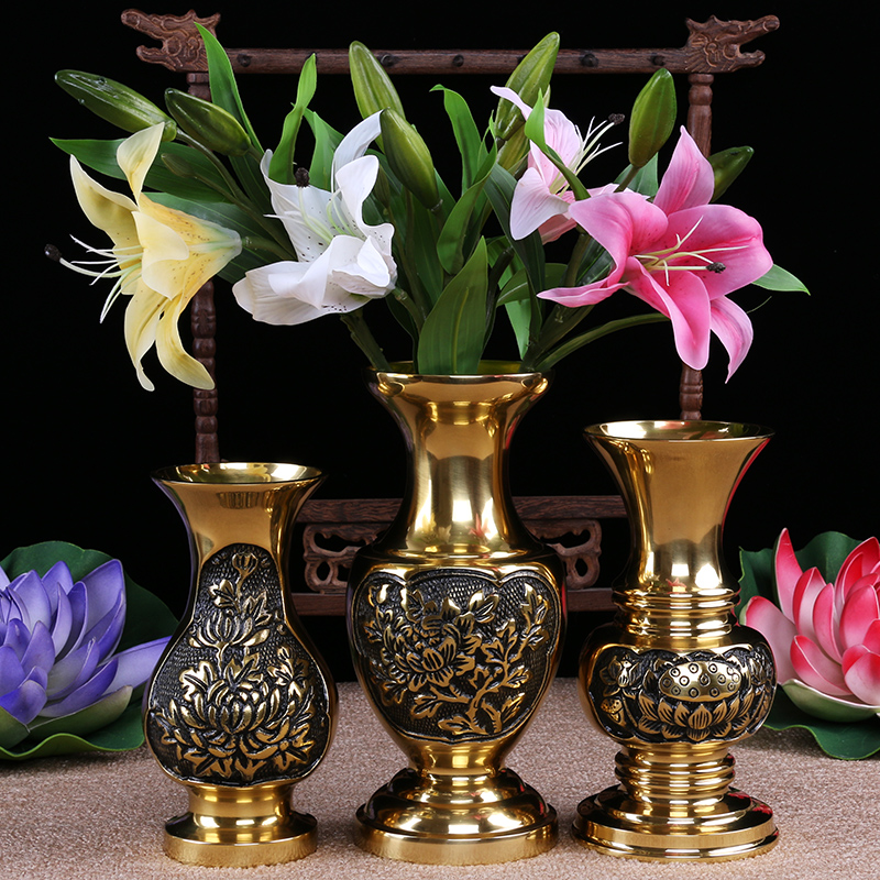 Copper vase pure copper for Buddha flowers Guanyin water purification Buddha Former peony Buddhist supplies Home Reancient pair of small inserting vases