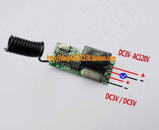 Low voltage 3 7V DC3-5V Wireless remote control switch Mini small volume learning type point motion self-lock interlock