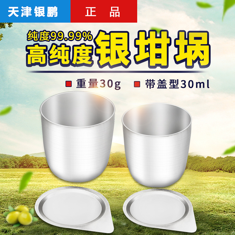 Tianjin Yinpeng Purity 99 99%silver crucible high temperature 50ml with lid 30ml National standard content 30g Laboratory