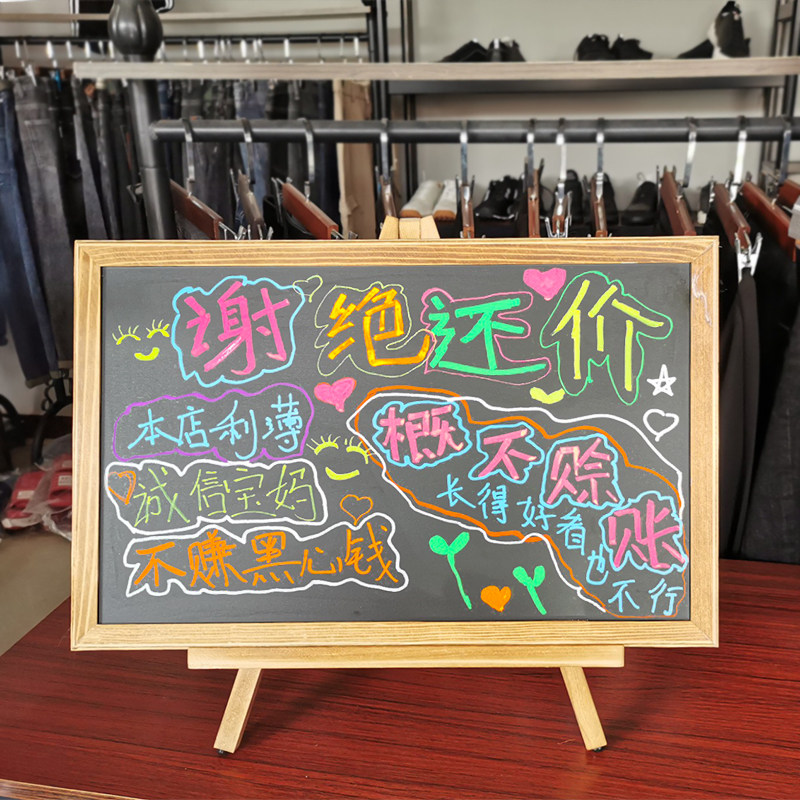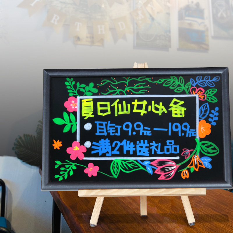 Baking wood frame vertical bar small blackboard Shop commercial advertising board Bracket type household children's teaching writing board