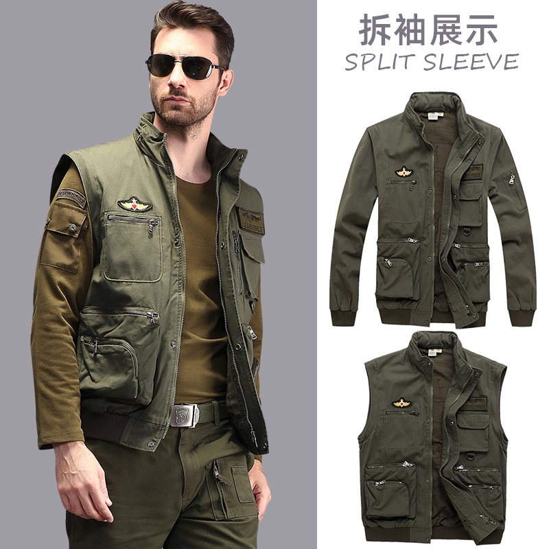 Spring and Autumn Outdoor Camouflage Training Coats Dismantling Sleeve Military Fans Flying Jackets Tactical Jacket Men's Two Coats
