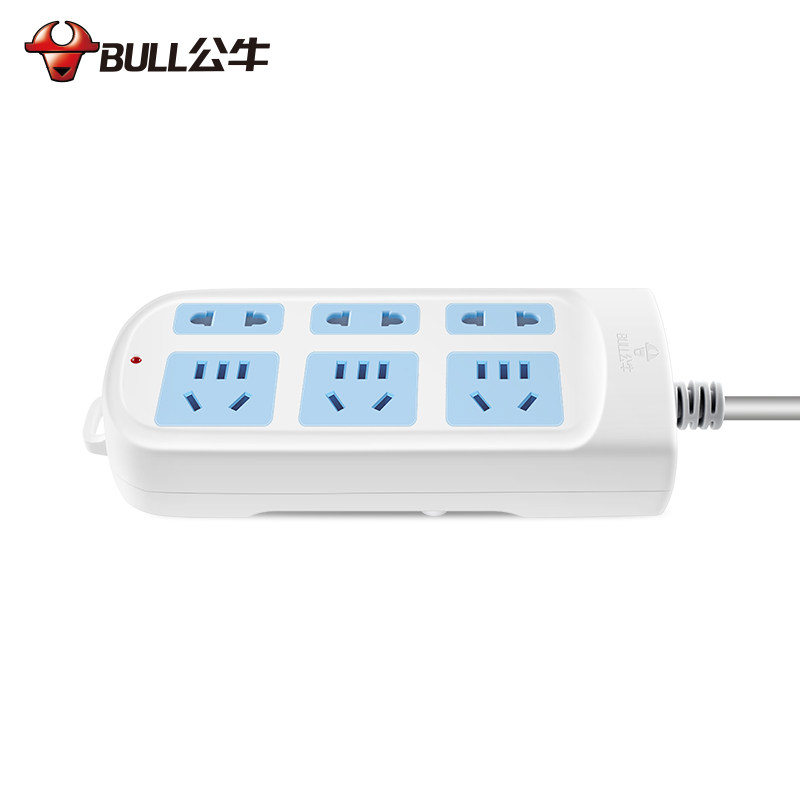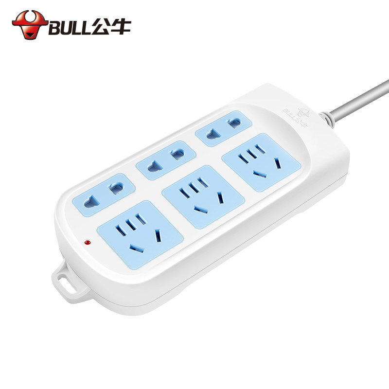 Bull socket wiring board multi - use trawler board 1 8 3 m plug - in 6 plug board household 10A2500 watts