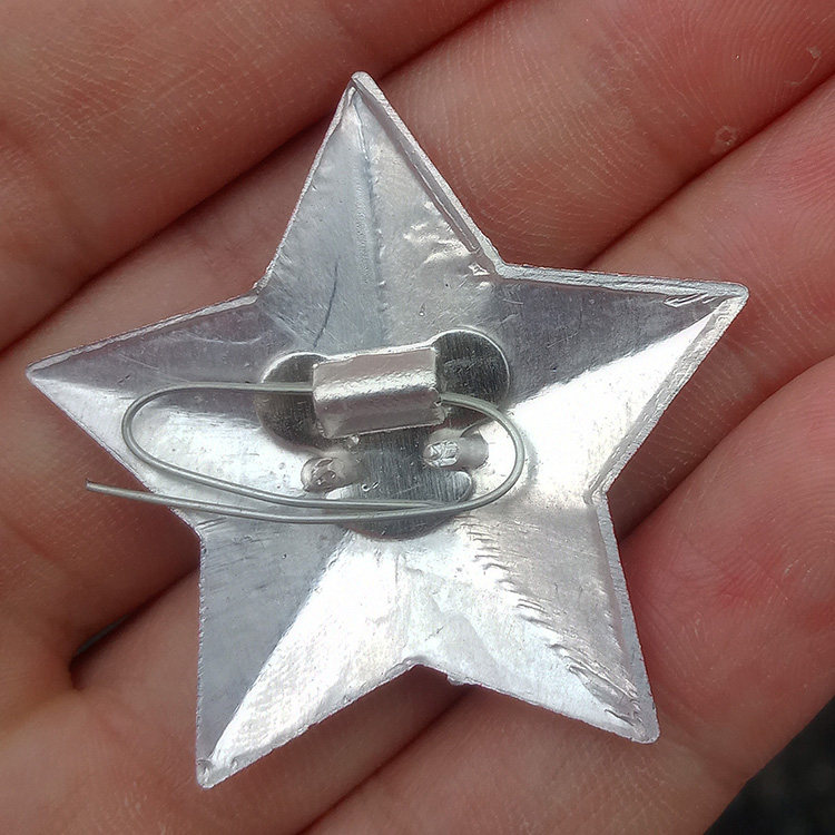 Old Red Five Stars Hat Emblem Metal Pentagram Red Pentagram Old Red Star Badge Shiny Red Heart Prop