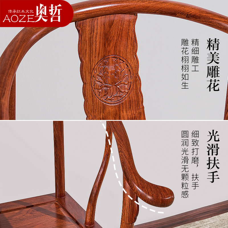 Aozhe Mahogany Furniture Hedgehog Rosewood Armchair Three-piece Set Chinese Antique Solid Wood Taishi Chair Combination A-H04