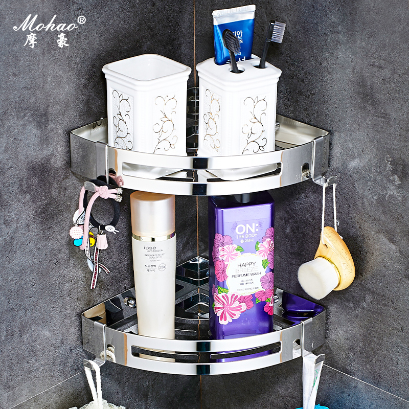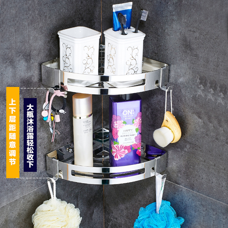 304 Stainless Steel Triangle Basket Double shelf Bathrooms Bath Lotion SHOWER DRESSING ROOM WALL-MOUNTED MESH BASKET FREE OF PUNCH CORNER STAND