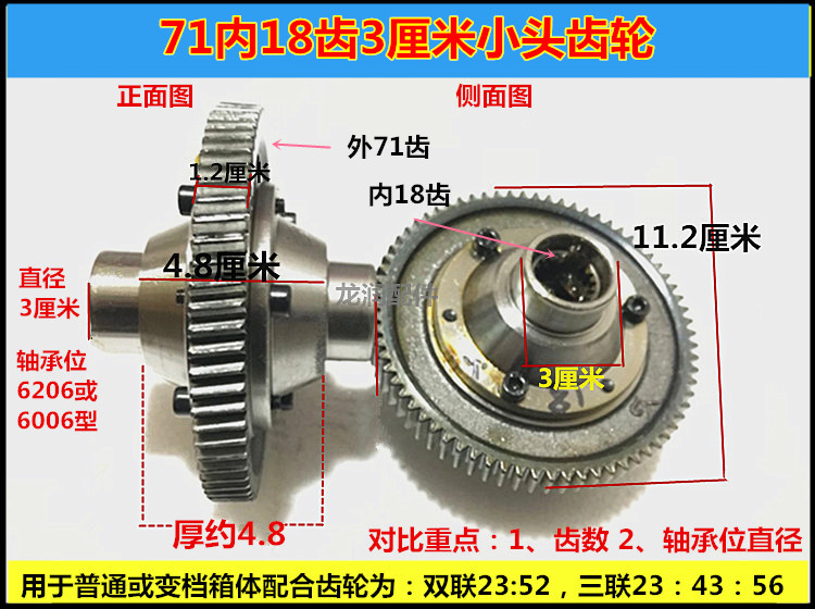 71 71 teeth in 3 cm head 16 teeth one 71 teeth 3 5 cm head internal 16 teeth one 71 teeth 3 cm head internal 18 teeth One 73 teeth 3 cm head internal 18 teeth One 23-52 Double