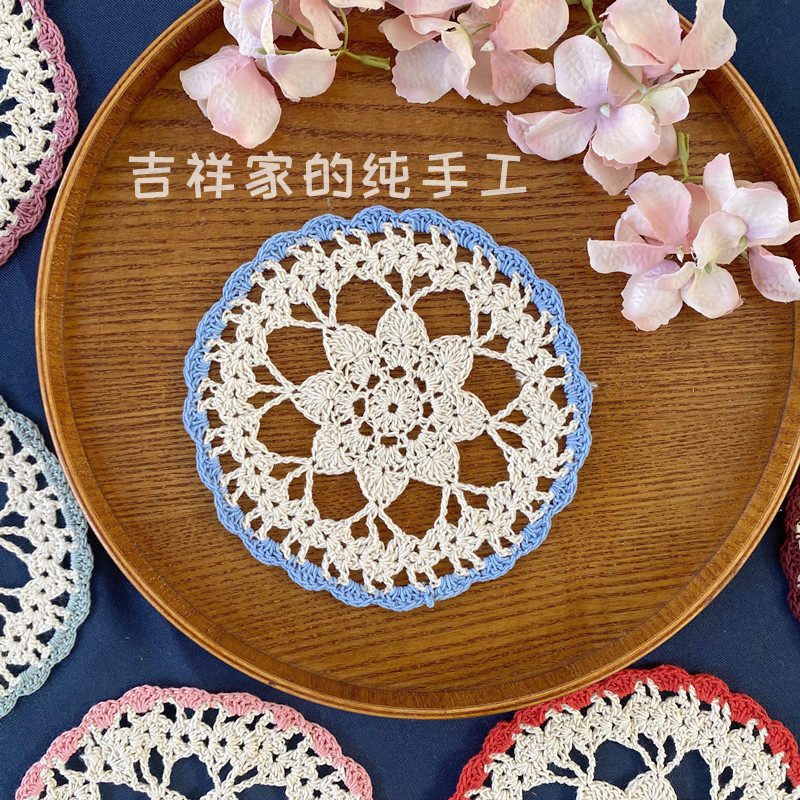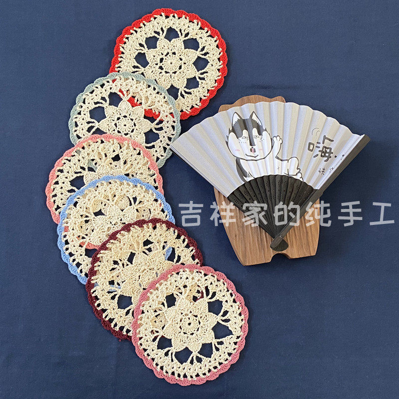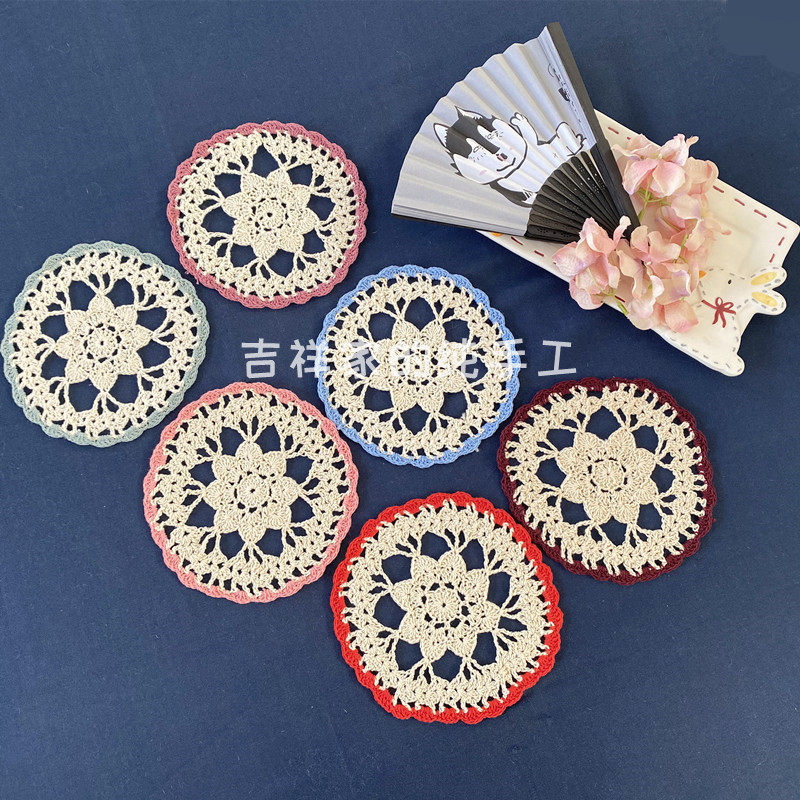 Mascot Pure Handmade Crochet Flower Cups Cushion Foreign Trade Full Cotton Trim Pad Shooting Props 14cm Round Multicolored