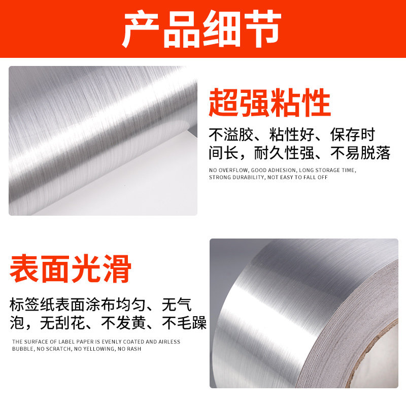 Light silver wire drawing equipment label nameplate sticker 110mm50m metal wire silver label sticker self-adhesive waterproof and high temperature resistance
