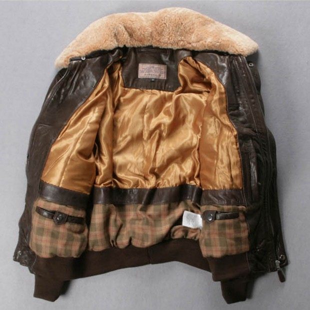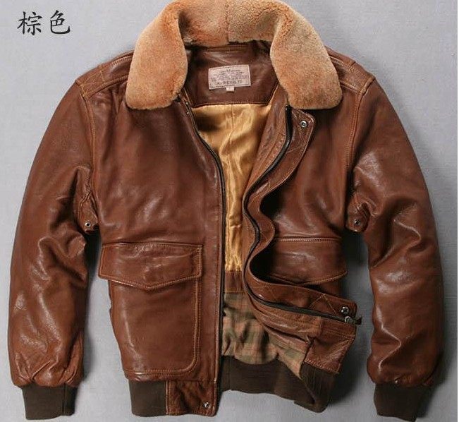 AVFLY men's leather clothing lamb wool collar A2 flying jacket sheep leather jacket genuine leather male coat