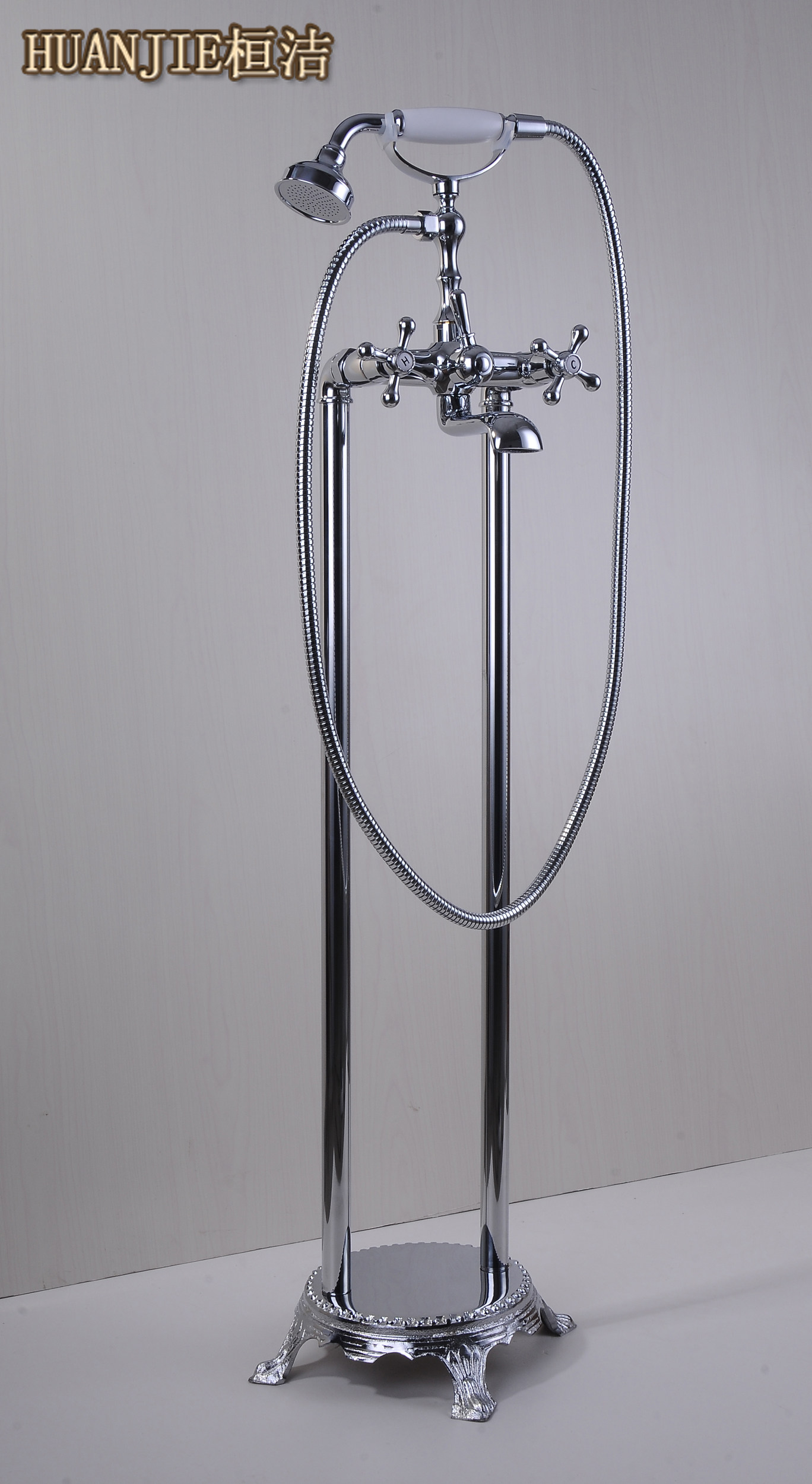 Floor bathtub tap European-style shower nozzle kit copper hot and cold vertical bath shower nozzle water mixing valve