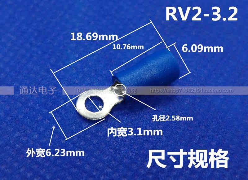 RV2-3 2 round pre-insulated cold pressed wiring terminals RV2-3 U type Y type cold press wiring 1000