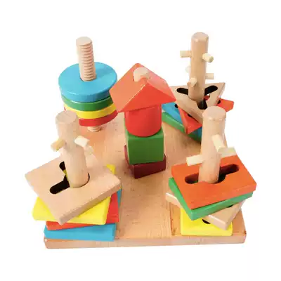 Early childhood sense integration fine movement training Montessori teaching aids set column shape matching Montessori toy building blocks 3 years old