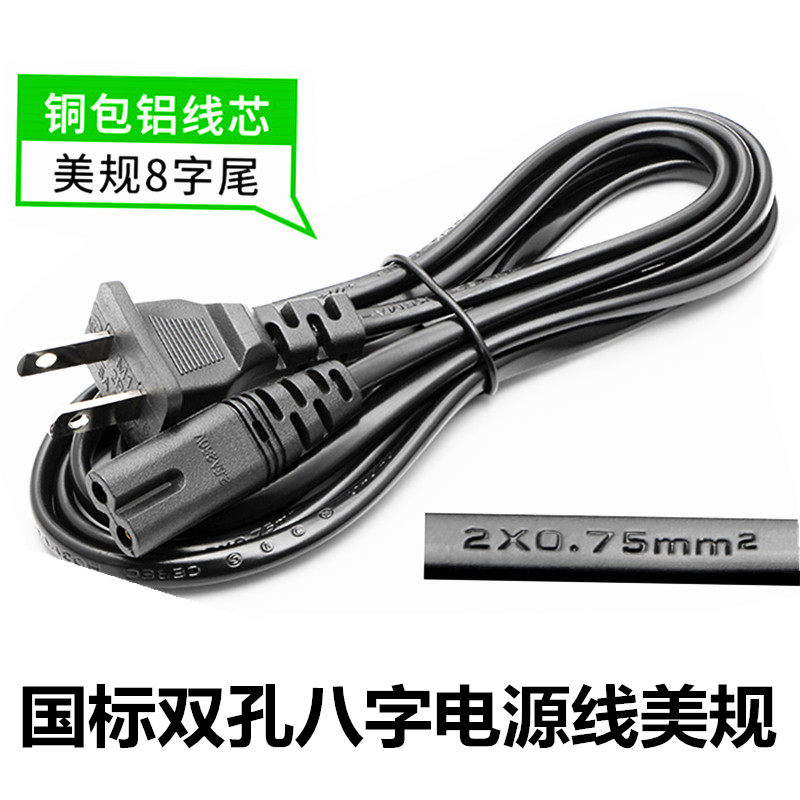 National Label Two-plug power cord Two-hole plug line 8-word tail double-hole eight-word power cord 2-plug charging line 1 5 m