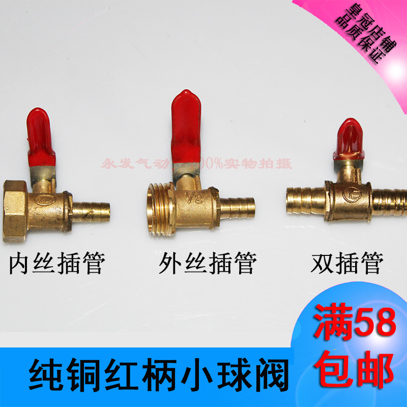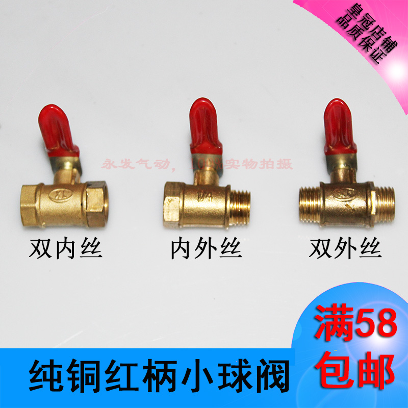 Copper red handle ball valve switch pagota ball valve 2 points 3 min water discharge discharge plug valve inside and outside the wire