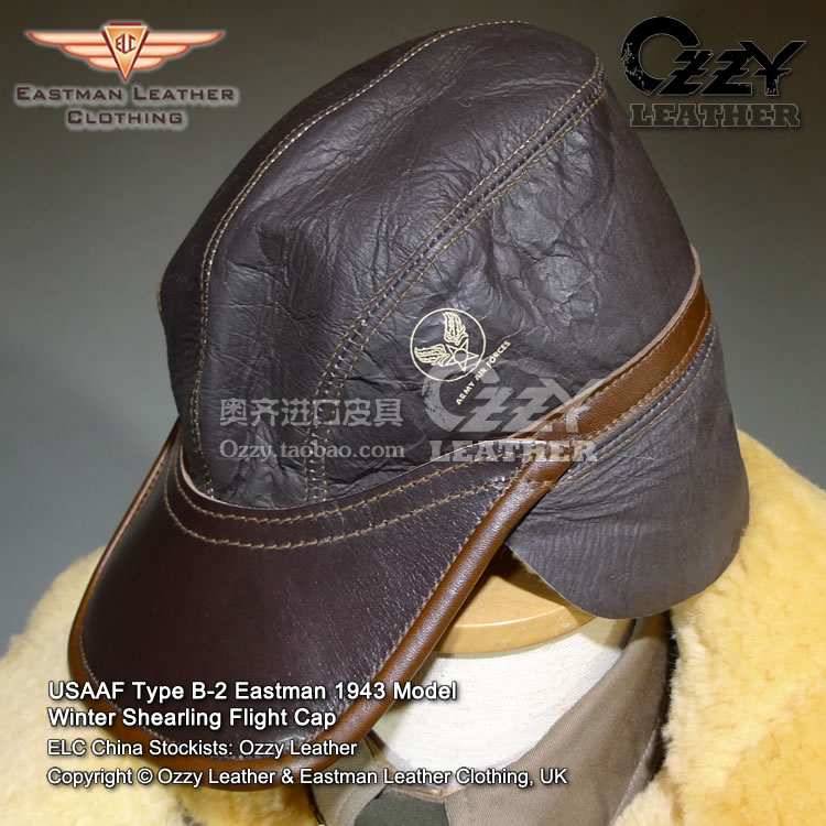 EASTMAN China agent ★ US Air Force B-2 fur integrated flying leather hat UK manufactured
