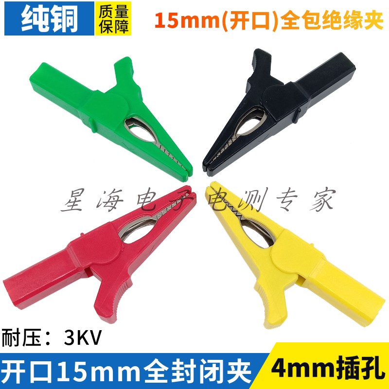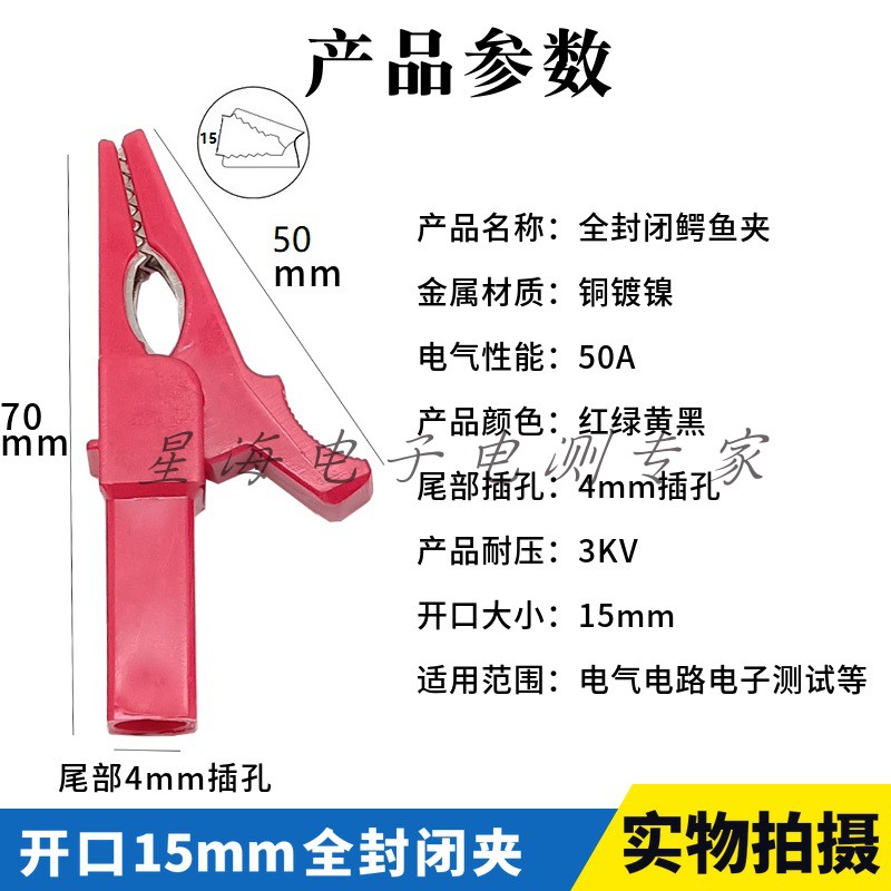 Pure copper opening 15mm crocodile clamp 50A full enclosed crocodile clamp 4mm plug - in clamp Full sheath safety test clip