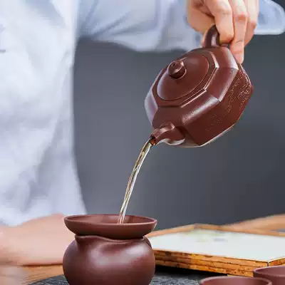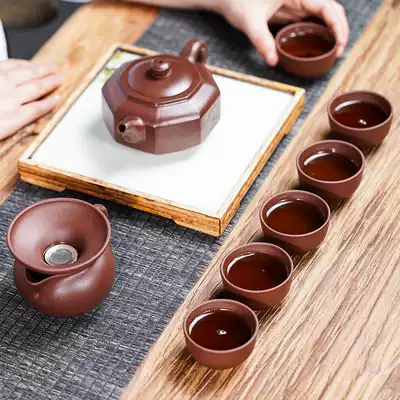 Yixing original mine handmade purple sand pot set household Kung Fu tea set Tea pot Eight-square landscape set pot