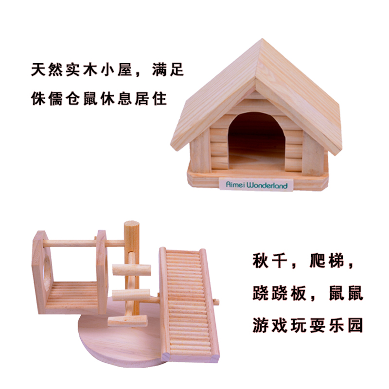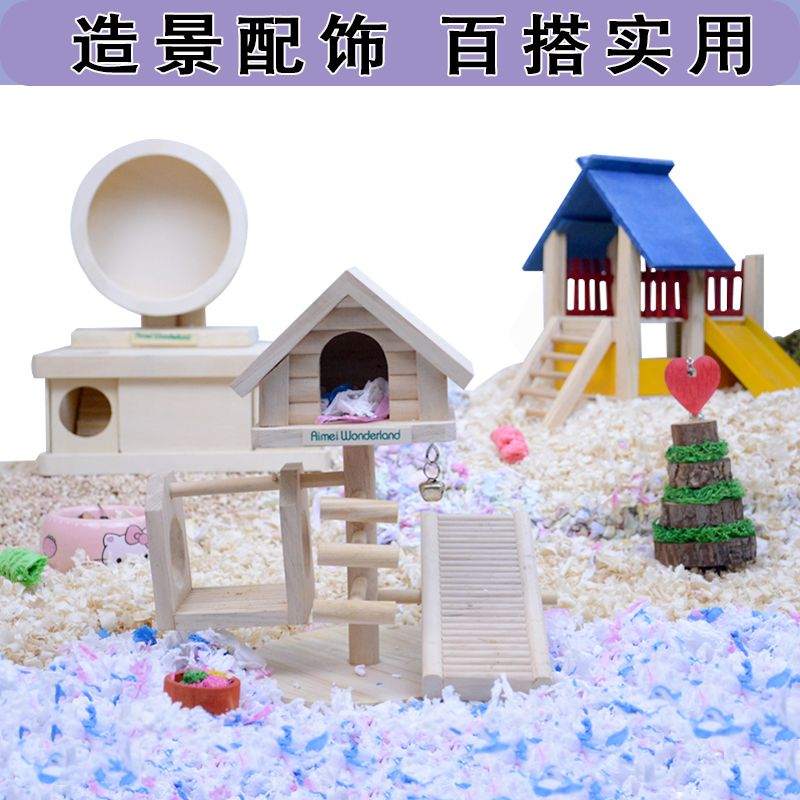 Hamster wooden toy landscaping supplies swing tunnel diy hideaway house wooden house sleeping nest cabin