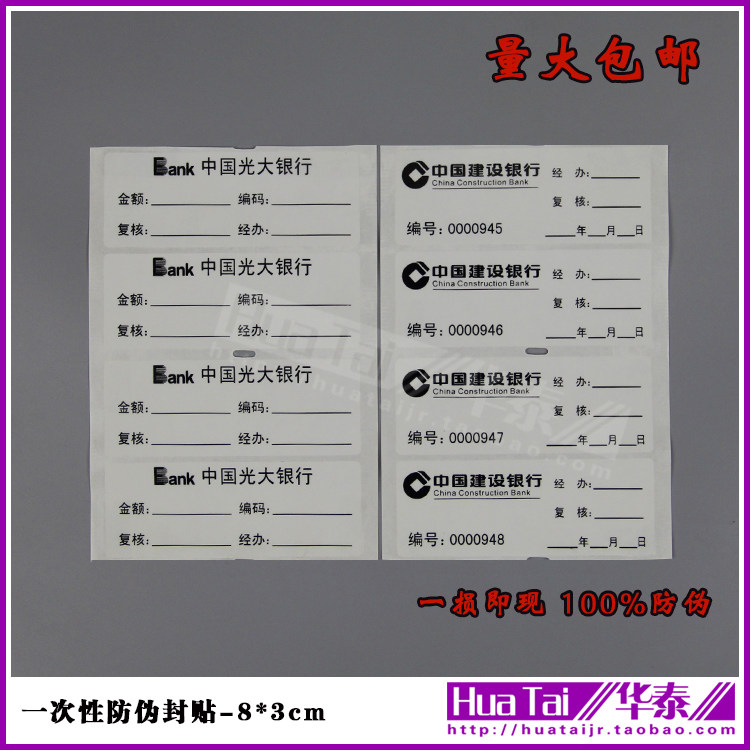 Bank-specific one-time anti-counterfeiting seal security seal seal sticker self-adhesive security seal 8 x 3CM