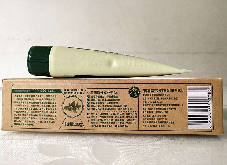 Baicaotang helps stop bleeding and repair toothpaste 100g Helps protect gums Toothpaste Traditional Chinese medicine does not contain fluorine toothpaste