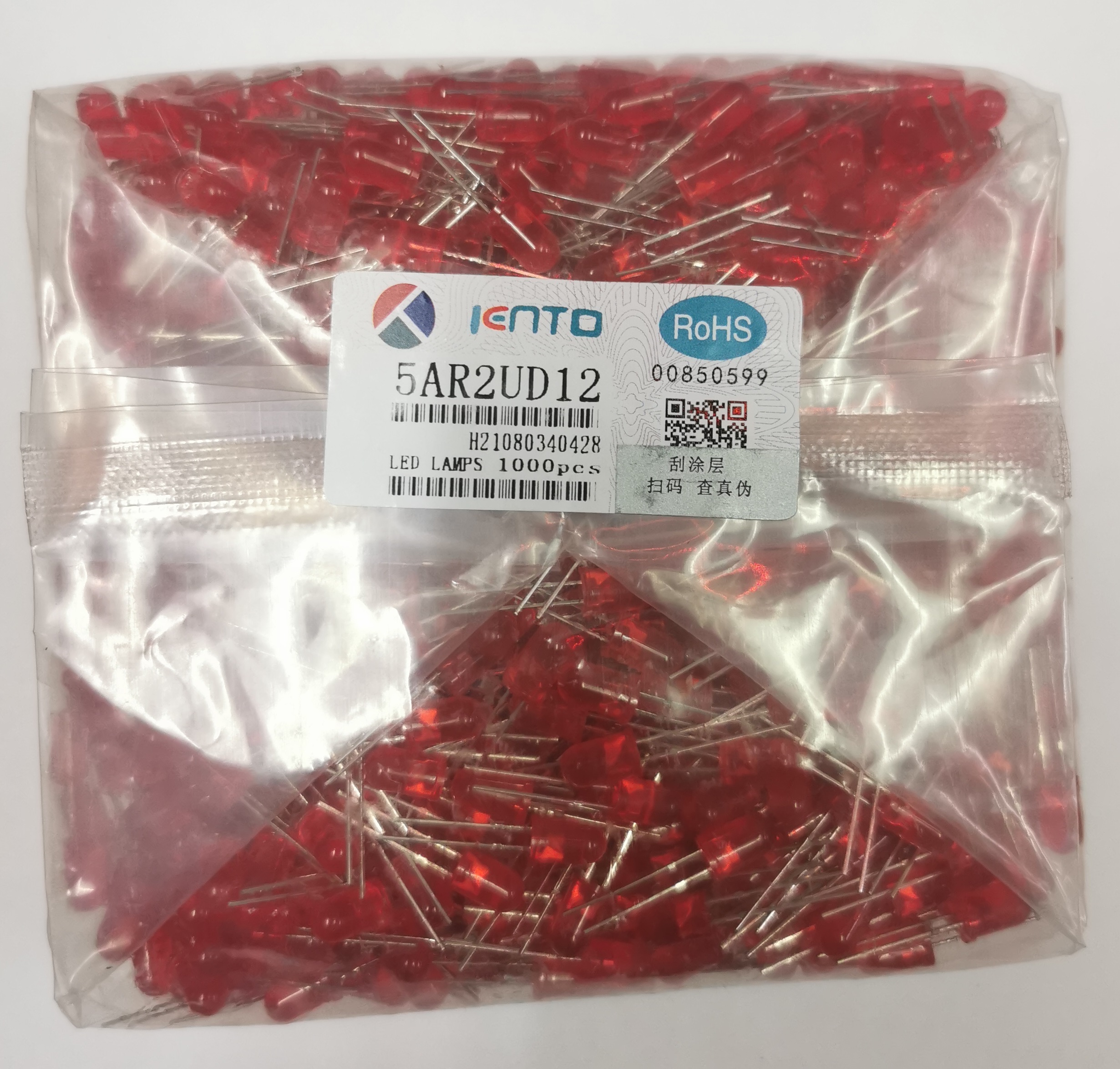 Quantong 5mm red and red high bright short foot bead 5AR2 UD12 fog red LED light emitting diode F5 high red