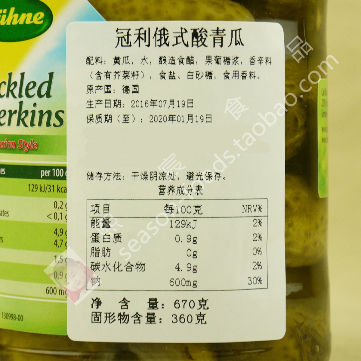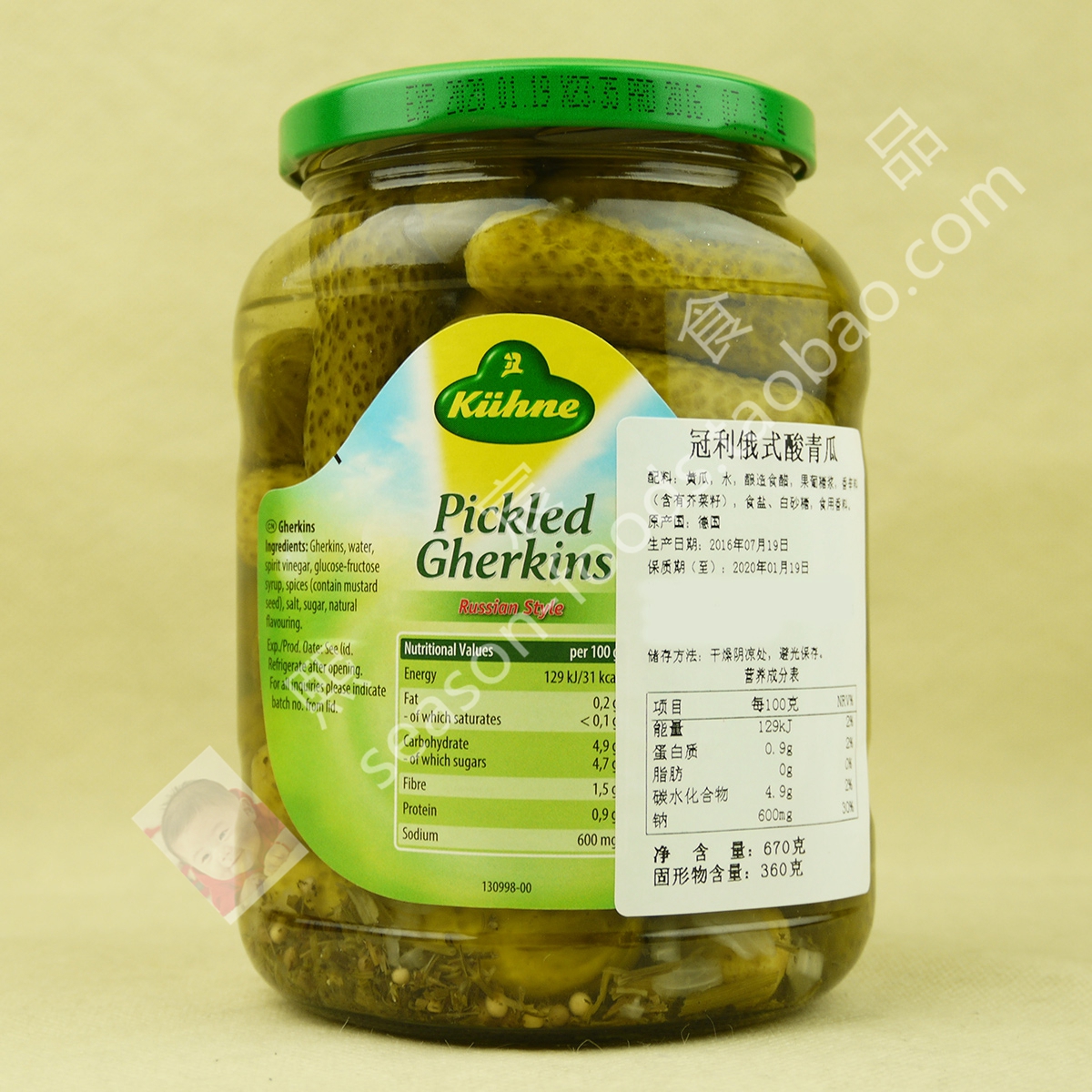 Kuhne Pickled Gherkins Rus Style Sour Cucumber 670g