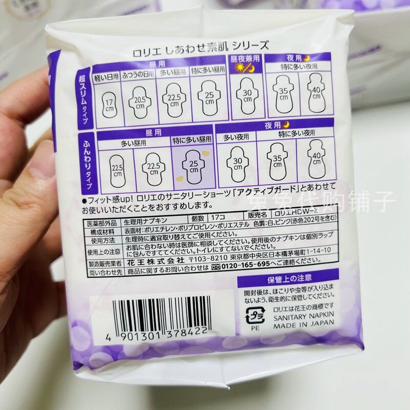 Spot Japanese native Kao instant-absorbing cotton soft muscle wing daily sanitary napkin 25cm 17 pieces without fluorescent agent