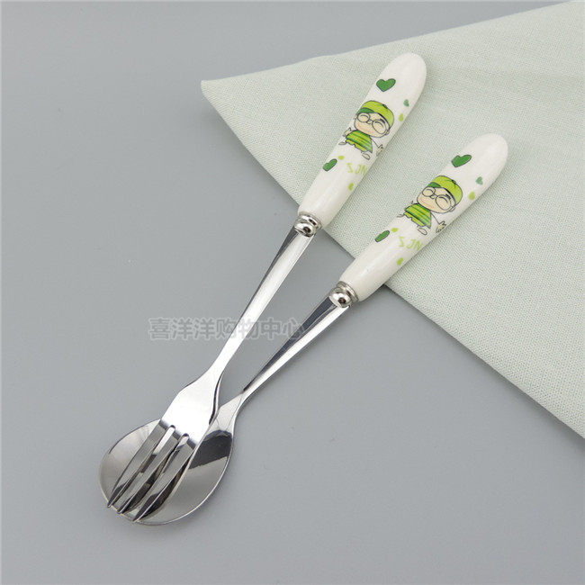 bone ceramic tableware happy family tableware stainless steel small spoon fork fruit fork