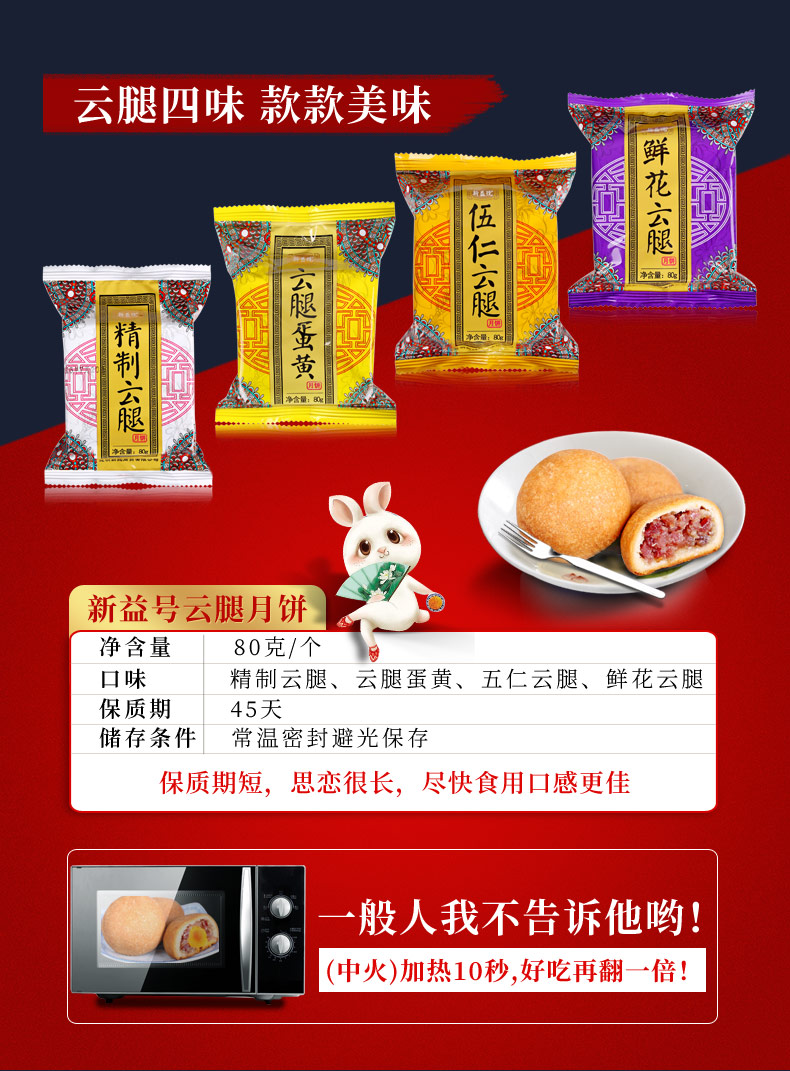 Xuanwei ham Mooncake 10 x80g Mid-Autumn Festival Yunnan specialty meringue ham egg yolk mooncake bulk multi-flavor snacks