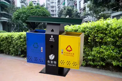 P-P161 outdoor classification trash cans Public places Pedestrian street trash bins outdoor double barrels Peel barrels